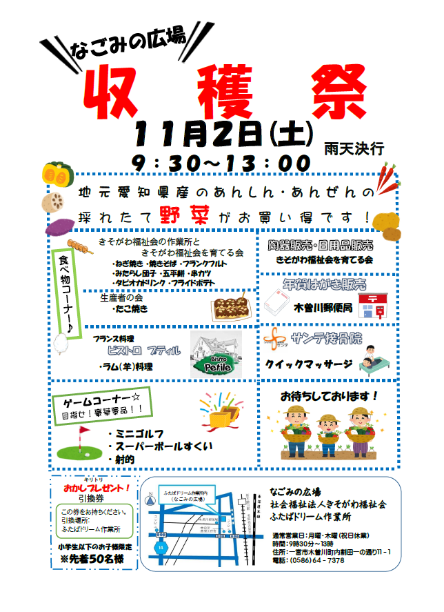 11月2日 土 なごみの広場収穫祭 のお知らせ 社会福祉法人 きそがわ福祉会